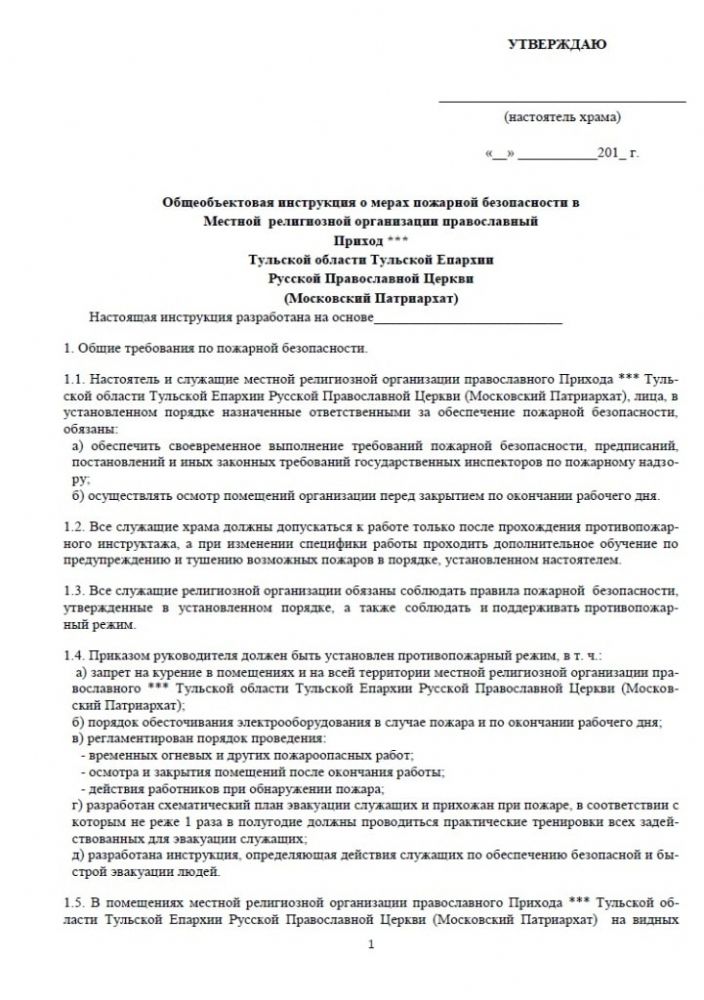 На фото: Инструкции о мерах пожарной безопасности в церкви и храме (образец)