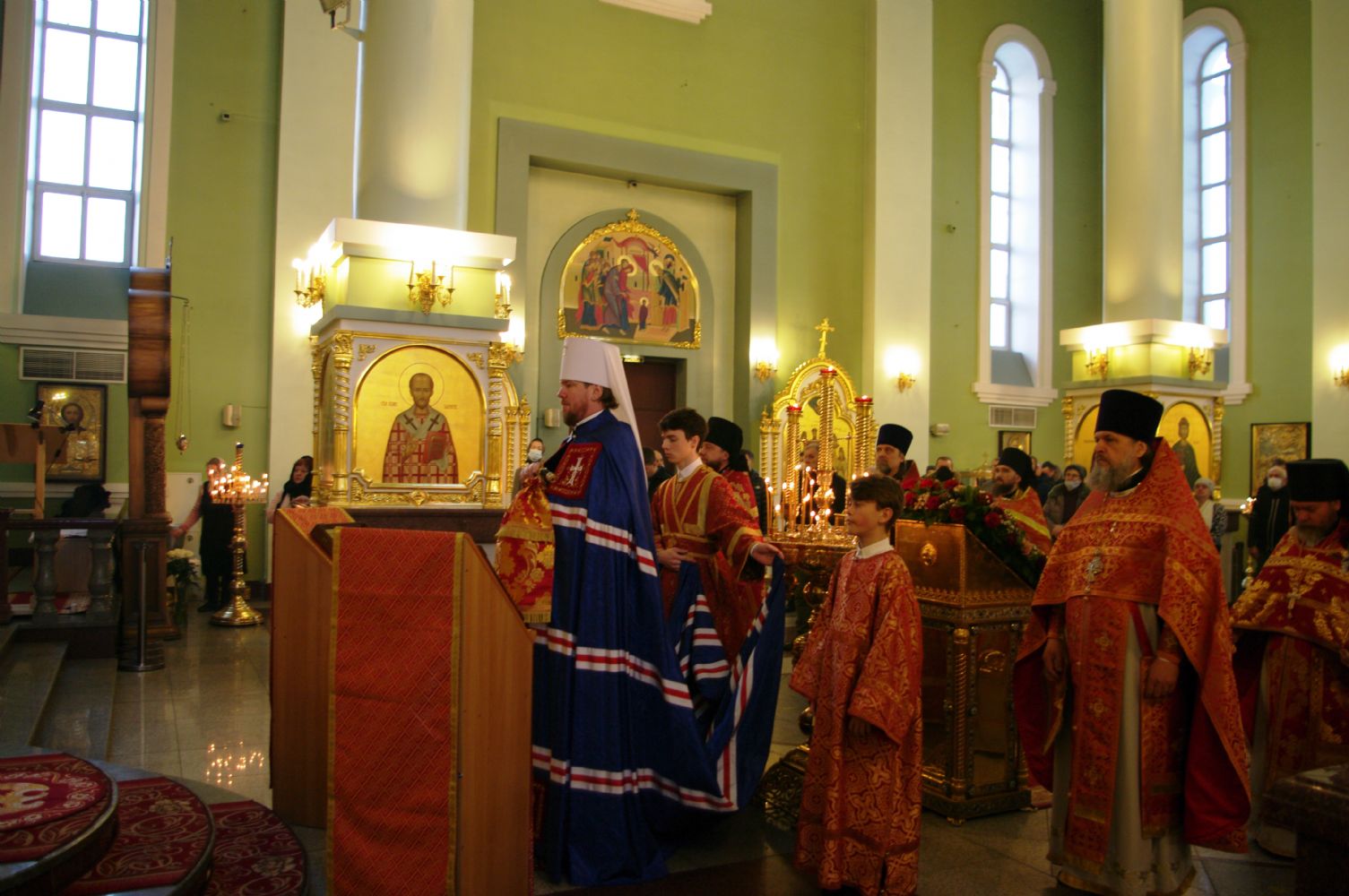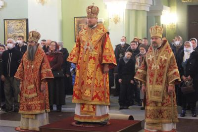 Владивосток. 7 февраля 2021 года, в Неделю 35-ю по Пятидесятнице и день памяти Собора новомучеников и исповедников Церкви Русской, митрополит Владивостокский и Приморский Владимир в сослужении епископа Уссурийского Иннокентия, викария Владивостокской епархии, и епископа Находкинского и Преображенского Николая совершил Божественную литургию в Покровском кафедральном соборе.