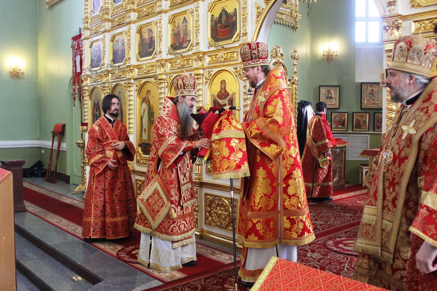 Архипастырям сослужили: благочинный II Владивостокского благочиния Владивостокской епархии, ключарь собора иеромонах Иоанн (Костин); благочинный II округа Владивостокской епархии протоиерей Андрей Машанов; благочинный III округа протоиерей Евгений Маляр; благочинный монастырей Владивостокской епархии, настоятель Свято-Серафимовского мужского монастыря игумен Климент (Кривоносов); ключарь Свято-Никольского кафедрального собора протоиерей Александр Талько; настоятель храма Казанской иконы Пресвятой Богородицы протоиерей Ростислав Мороз; игумен Антоний (Каменчук); протоиерей Игорь Шевчук; иерей Владимир Плотников.