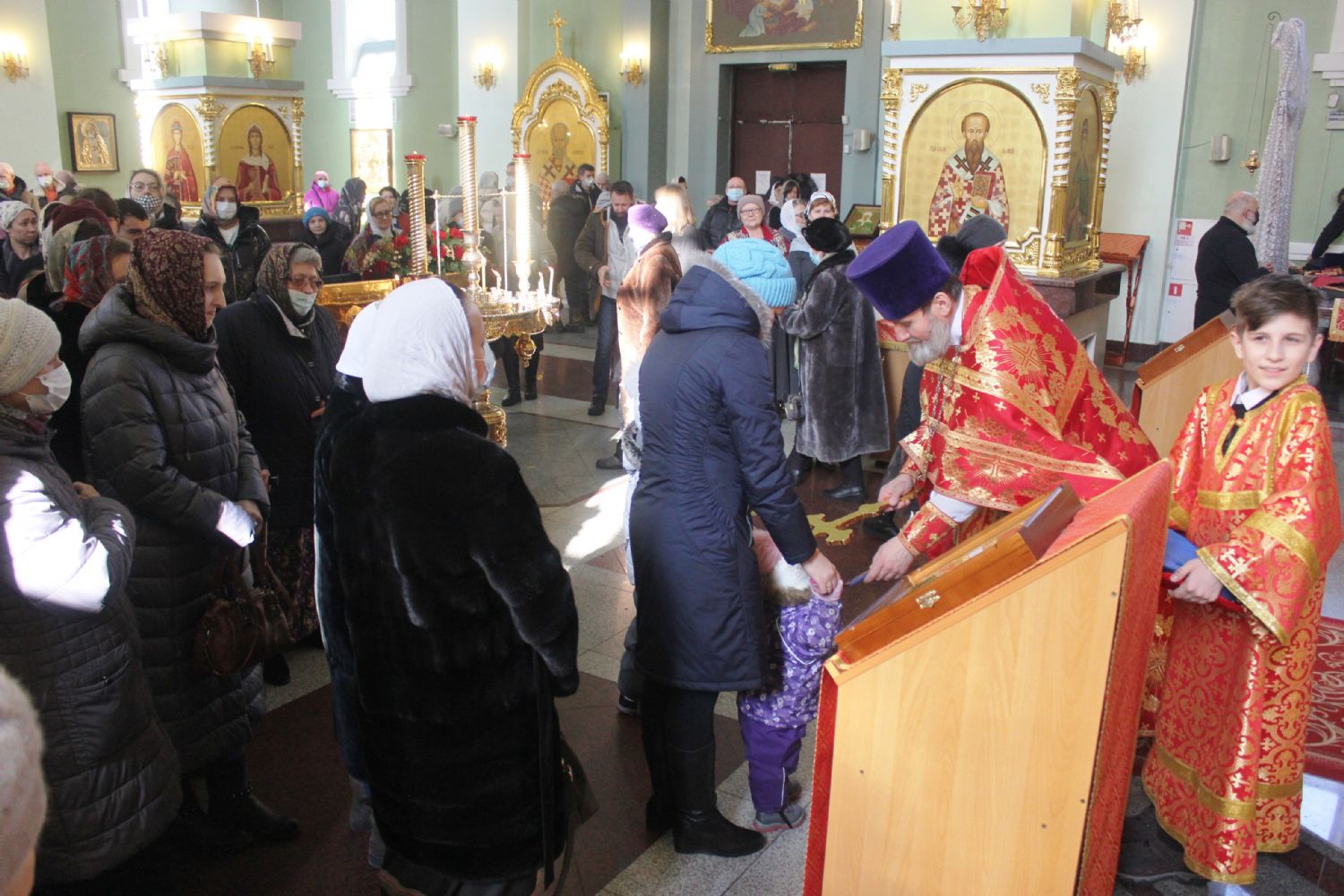Богослужебные песнопения исполнил Митрополичий хор Покровского собора под управлением регента Елены Левада.