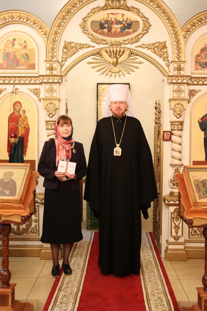 Владивосток. 8 июля 2022 года в домовом храме преподобного Сергия Радонежского в Епархиальном управлении Владивостокской епархии состоялась торжественная церемония награждения сотрудников памятными знаками «10 лет Приморской митрополии Русской Православной Церкви».