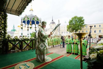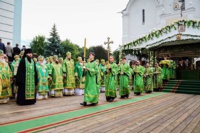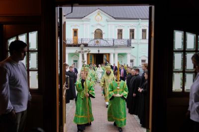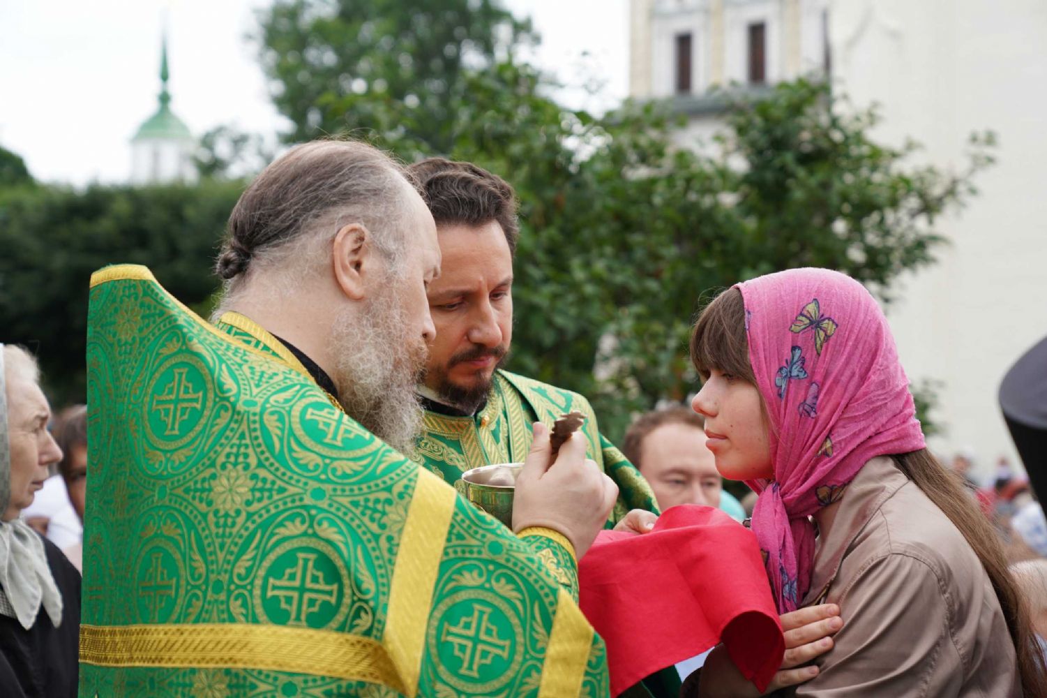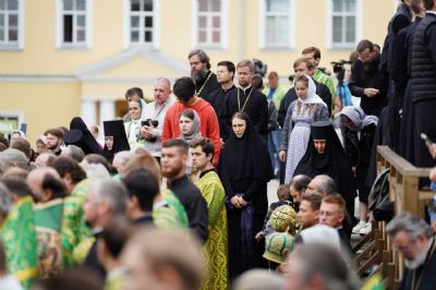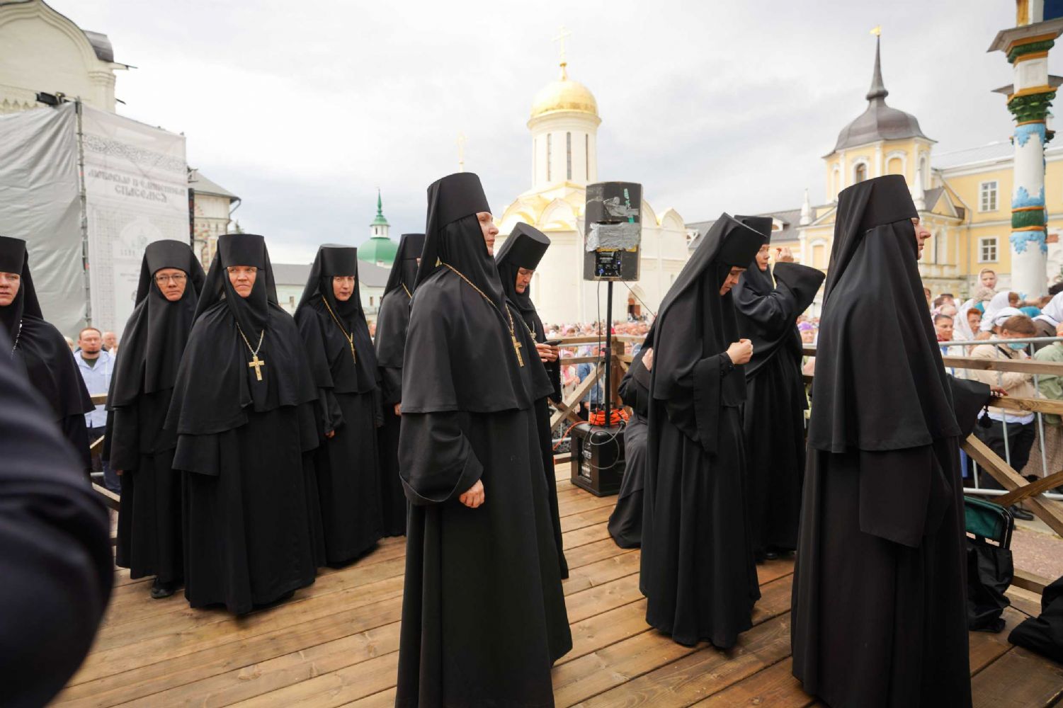 За богослужением молились заместитель председателя Синодального отдела по монастырям и монашеству, настоятельница Зачатьевского ставропигиального монастыря игумения Иулиания (Каледа), настоятельницы ставропигиальных монастырей, монашествующие и многочисленные паломники, прибывшие на торжества в Свято-Троицкую Сергиеву лавру.