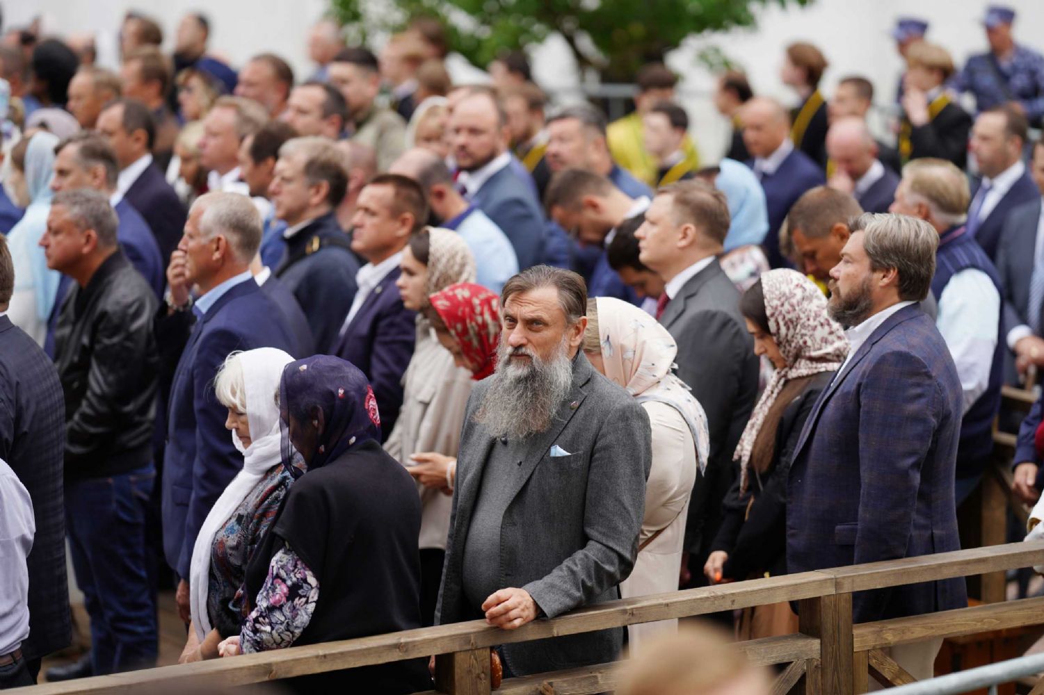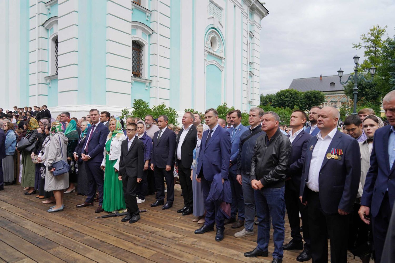 На богослужении присутствовали: губернатор Санкт-Петербурга А.Д. Беглов; председатель Либерально-демократической партии России, председатель Комитета по международным делам Государственной Думы Федерального Собрания Российской Федерации Л.Э. Слуцкий; председатель Комитета Государственной Думы ФС РФ по строительству и жилищно-коммунальному хозяйству С.А. Пахомов; председатель Комитета Государственной Думы ФС РФ по собственности, имущественным и земельным отношениям, президент Межпарламентской ассамблеи Православия С.А. Гаврилов; депутат Государственной Думы ФС РФ, советник мэра г. Москвы, советник Патриарха Московского и всея Руси по вопросам строительства, куратор Программы строительства православных храмов в г. Москве В.И. Ресин; председатель Московского городского суда М.Ю. Птицын; вице-президент Российского союза химиков А.Г. Гурьев; президент Российской ассоциации производителей удобрений А.А. Гурьев; старший вице-президент — финансовый директор ПАО «ГМК "Норильский никель"» С.Г. Малышев; председатель Наблюдательного совета Общероссийского общественного движения «Россия Православная» М.М. Иванов; глава Сергиево-Посадского городского округа М.Ю. Токарев.