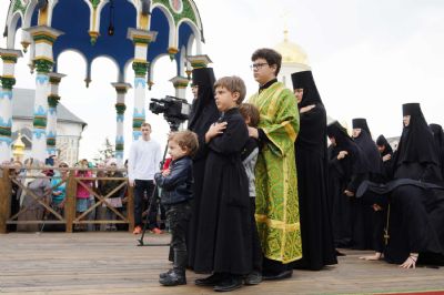 Богослужебные песнопения исполнили объединенный хор монастырей России под управлением регента Георгия Сафонова и братский хор Троице-Сергиевой лавры под управлением иеромонаха Нестора (Волкова).