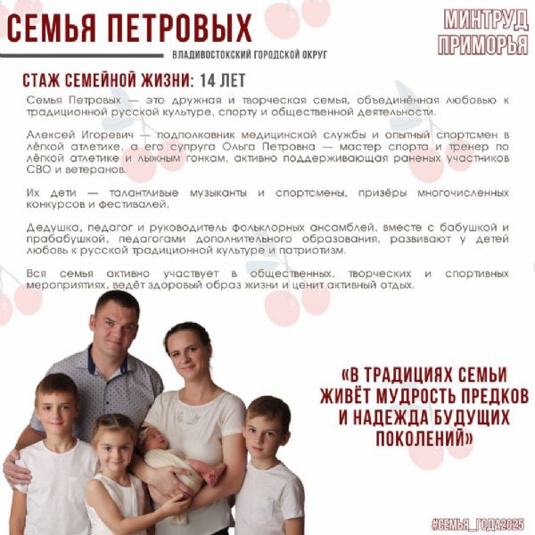Семья Петровых — настоящий пример крепкой, дружной и талантливой семьи, которая живёт по традиционным ценностям и активно участвует в жизни общества! Они являются прихожанами храма святых равноапостольных Мефодия и Кирилла. Наверняка многие наши подписчики видели их выступления на мероприятиях епархии.