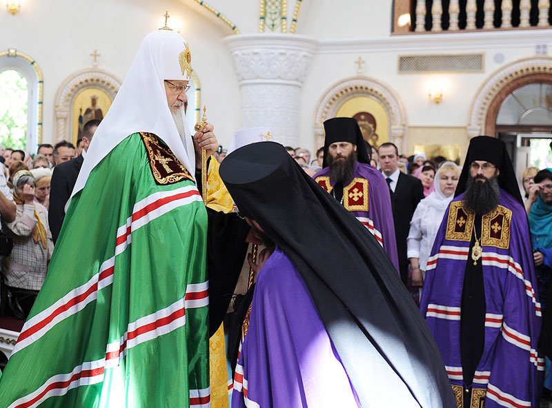 По окончании Литургии Предстоятель Русской Церкви напутствовал епископа Софрония на служение и вручил ему архиерейский жезл. По традиции новохиротонисанный епископ преподал богомольцам первое архипастырское благословение.