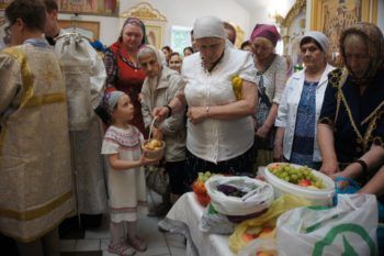 После проповеди владыка Иннокентий освятил фрукты, которые принесли с собой прихожане. Часть плодов они оставили в церкви, как пожертвование, которое раздается бедным и детям-сиротам.