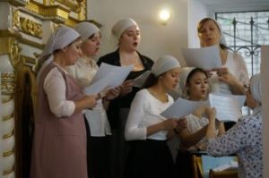Богослужебные песнопения исполнил хор храма Успения Пресвятой Богородицы под управлением регента Юлии Лосевой.