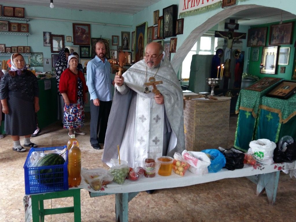 После этого отец Владимир проехал в храм Пресвятой Троицы села Чкаловское, где также совершил молебен, чин освящения плодов и, по желанию некоторых прихожан, панихиду.
