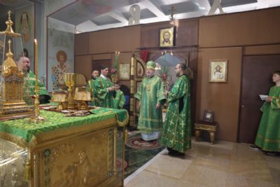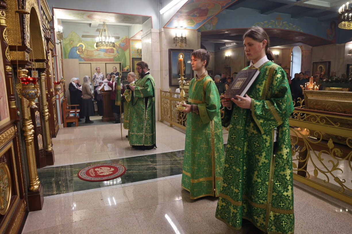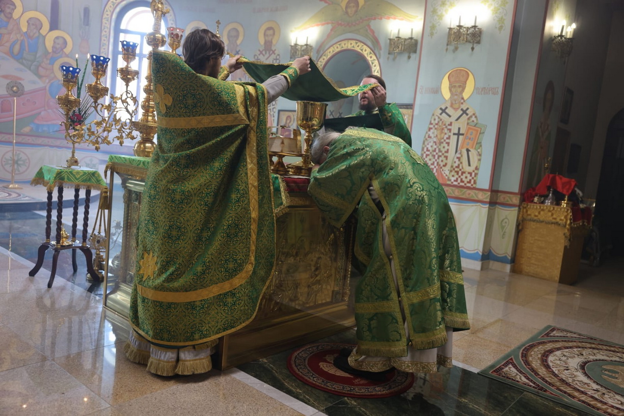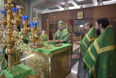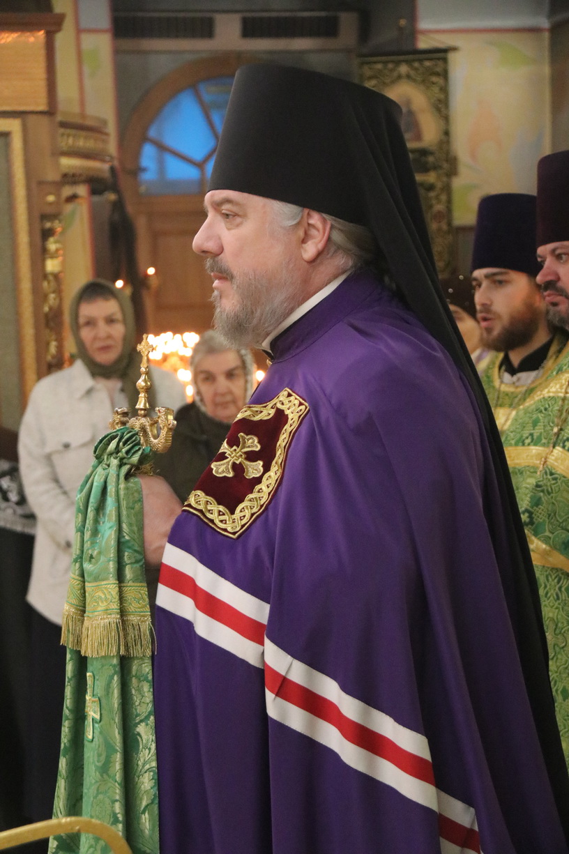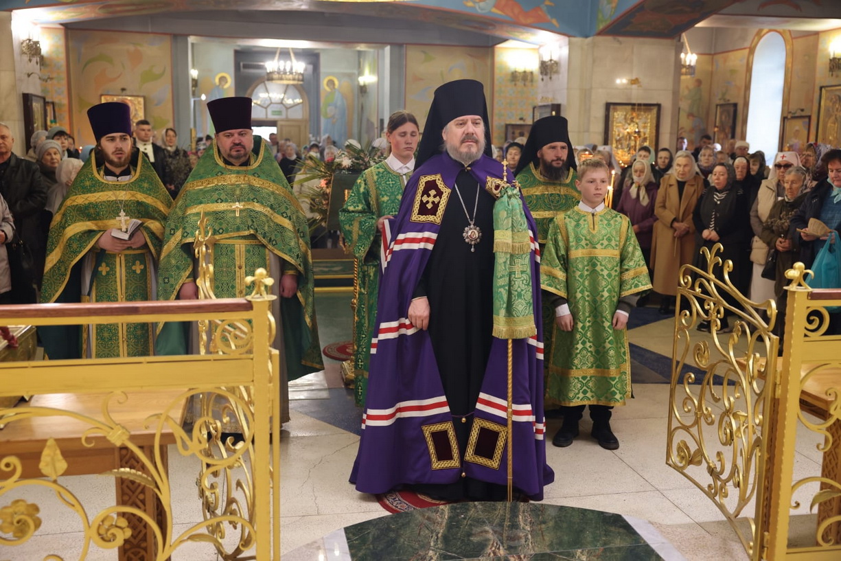 Его Преосвященству сослужили: иерей Виталий Шаркеев; иерей Андрей Попов; иеромонах Ермоген (Крещенко); иерей Илия Гречишников.
