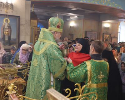 За богослужением более 300 прихожан храма причастилсь Святых Христовых Таин.