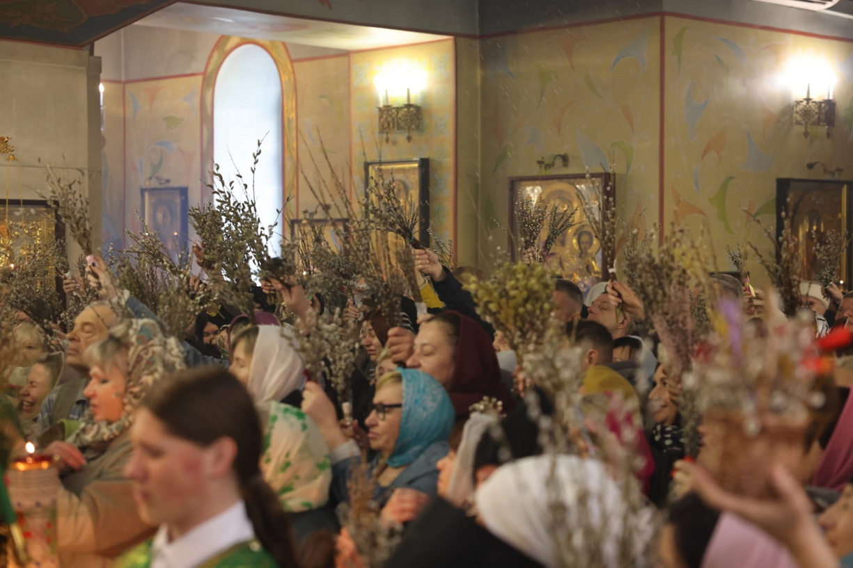 В Вербное воскресенье епископ Находкинский и Преображенский Николай совершил Божественную литургию свт. Иоанна Златоуста в Казанском Кафедральном соборе г. Находки.