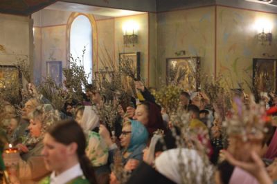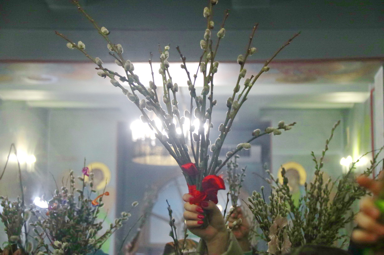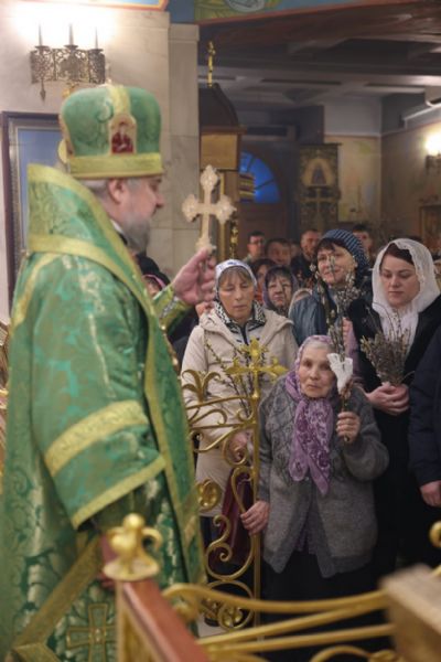 По заамвонной молитве епископ Николай, в сослужении священства, совершил праздничное освящение вербы и обратился к верующим с архиерейским словом: