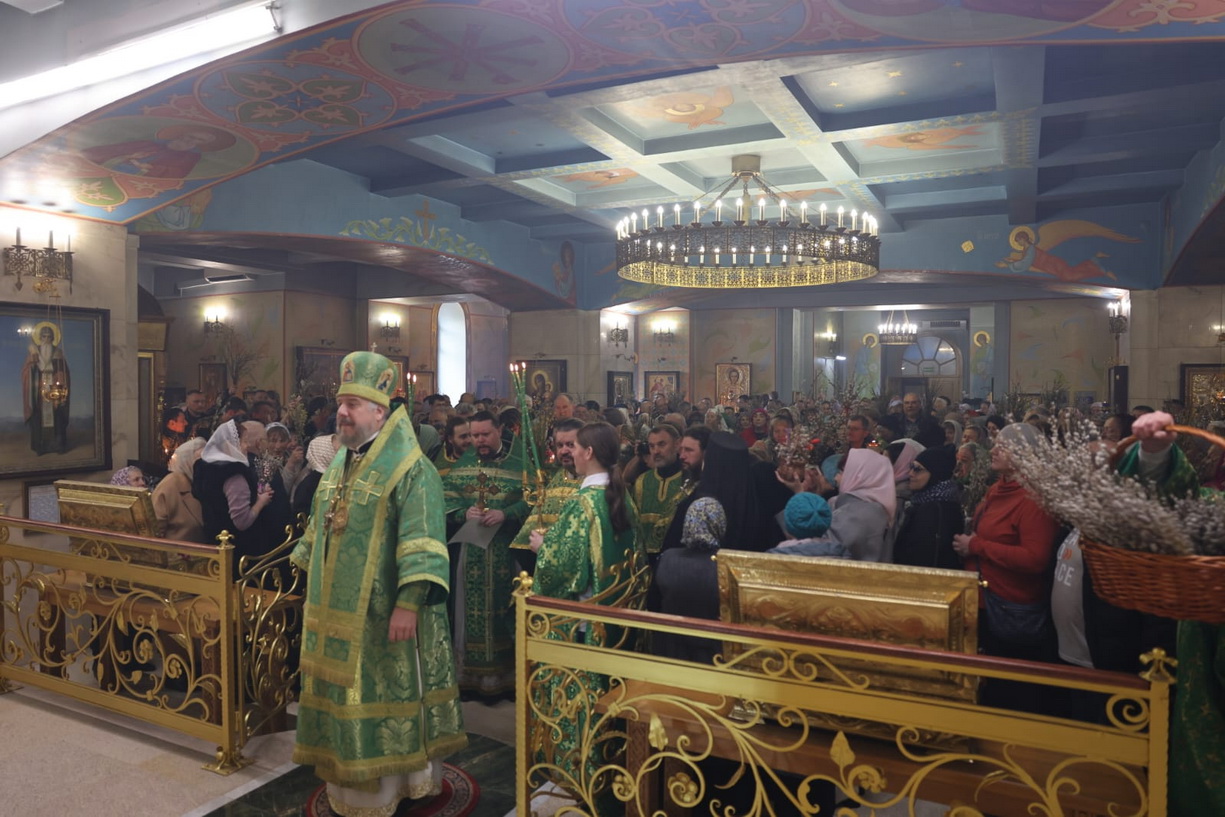 В праздник Входа Господня во Иерусалим, Вербное воскресенье, епископ Находкинский и Преображенский Николай совершил Божественную литургию святителя Иоанна Златоуста в Кафедральном Казанском соборе г. Находки.