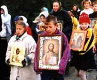 Ребята стараются не растягиваться. Даже самые маленькие и капризные поняли, что никто на ручках их не понесет. Смирившись с тяжелой долей пеших паломников, младшеклассники бодро преодолевают пространство, неся в руках маленькие иконки.