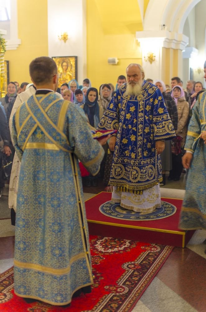 Владивосток. 14 октября 2013 года, в праздник Покрова Пресвятой Богородицы, митрополит Владивостокский и Приморский Вениамин возглавил Божественную литургию в Покровском кафедральном соборе. Ему сослужили клирики собора, настоятель храма святых равноапостольных Кирилла и Мефодия протоиерей Игорь Талько, настоятель часовни святителя Спиридона Тримифунского иерей Владислав Матвеев, священник Успенского храма иерей Андрей Калчев.