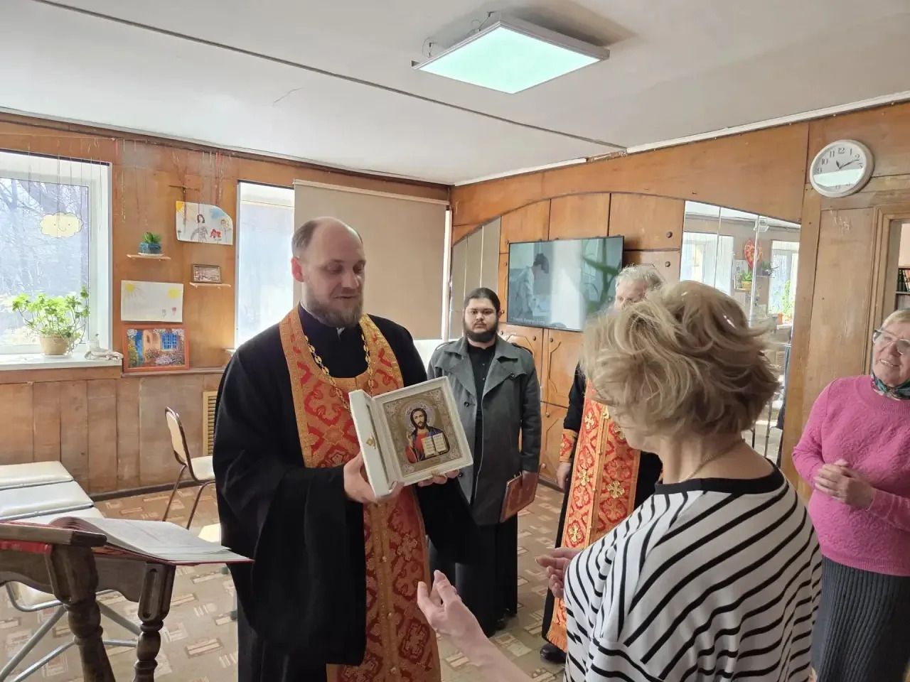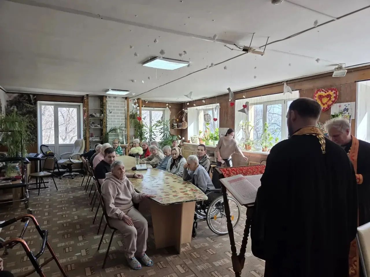 В стенах пансионата был совершён пасхальный молебен. Радостное пение тропаря «Христос Воскресе!» наполнило зал особой атмосферой. Священнослужители обратились к собравшимся со словом проповеди, в которой рассказали о духовном смысле Воскресения Господня, победе жизни над смертью и значении праздника Пасхи для каждого христианина.