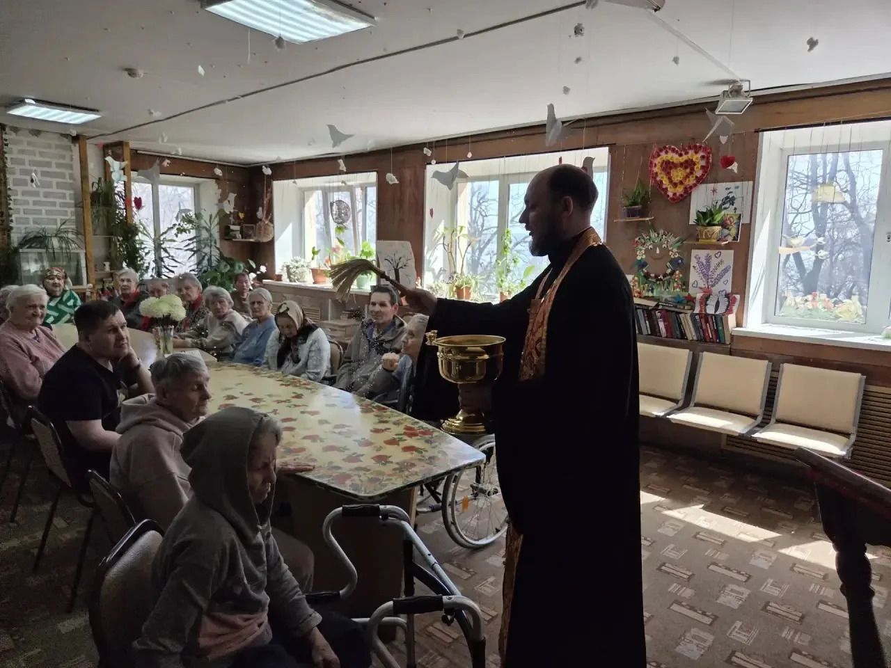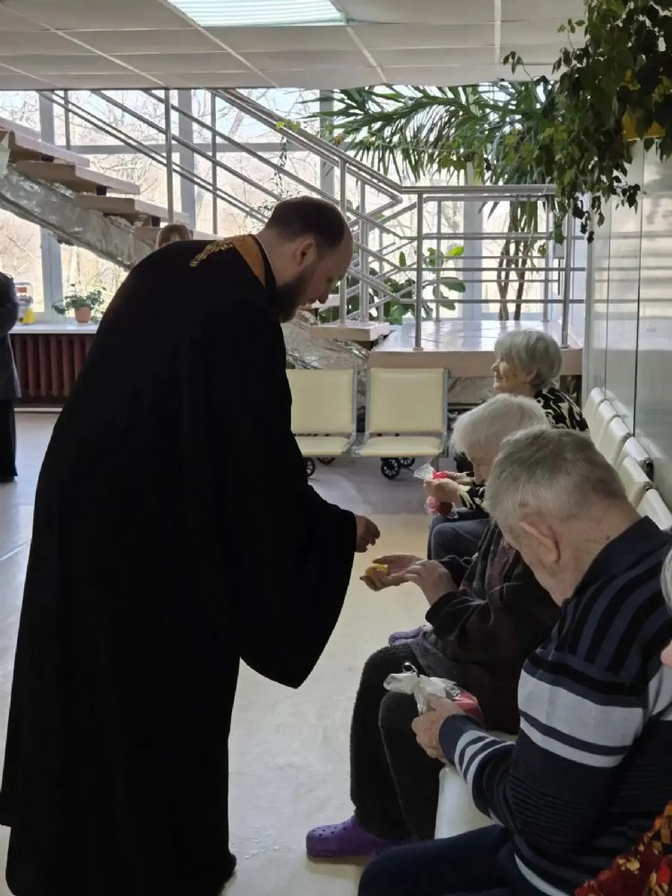 13 апреля состоялась миссионерская поездка прихода храма Богоявления г. Артема в пансионат «Наши Гости». Настоятель храма иерей Дионисий Ищенко и иерей Вадим Родин вместе с сёстрами милосердия, певчими и помощником настоятеля посетили подопечных учреждения, чтобы разделить с ними праздник Светлого Христова Воскресения.