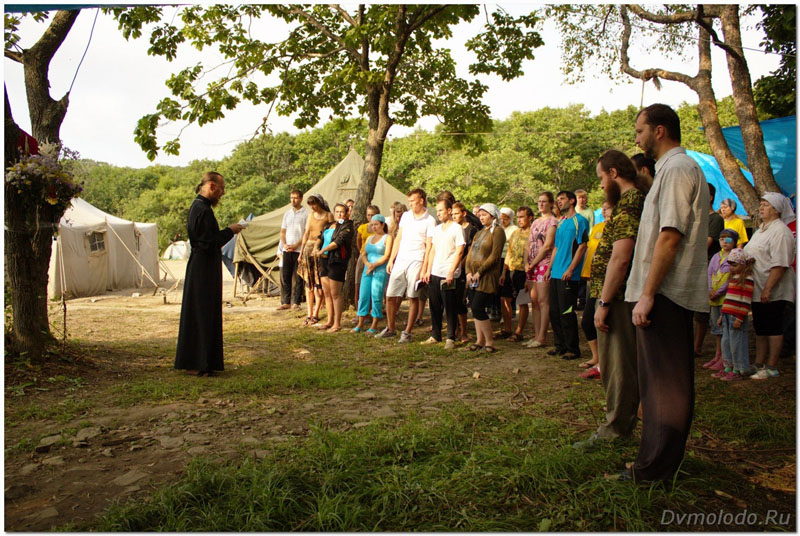 Началось всё с Божественной Литургии в храме в честь Порт-Артурской иконы Божией Матери. Богослужение возглавил викарий Владивостокской епархии епископ Уссурийский Иннокентий. После богослужения мы на трёх автобусах выехали на место проведения слёта, где нас уже ждали с горячим завтраком. Перекусив, все побежали купаться на море. Кстати, купание, игры в волейбол и лапту и другие увеселительные программы были основной нашей деятельностью первые дня три. Место там чудесное. Живописный лесной ландшафт, свежий воздух, красивейшие бухты: есть тихие, пустынные, галечные, есть большие песочные, есть с отвесными скалами, где можно здорово понырять. Всё это дополняют незабываемые вечерние закаты, песни под гитару возле костра, бескрайнее звёздное небо и, конечно же, замечательный коллектив.