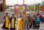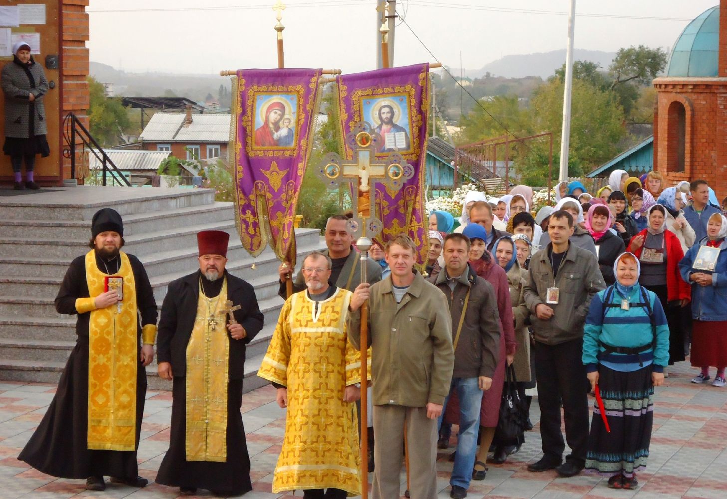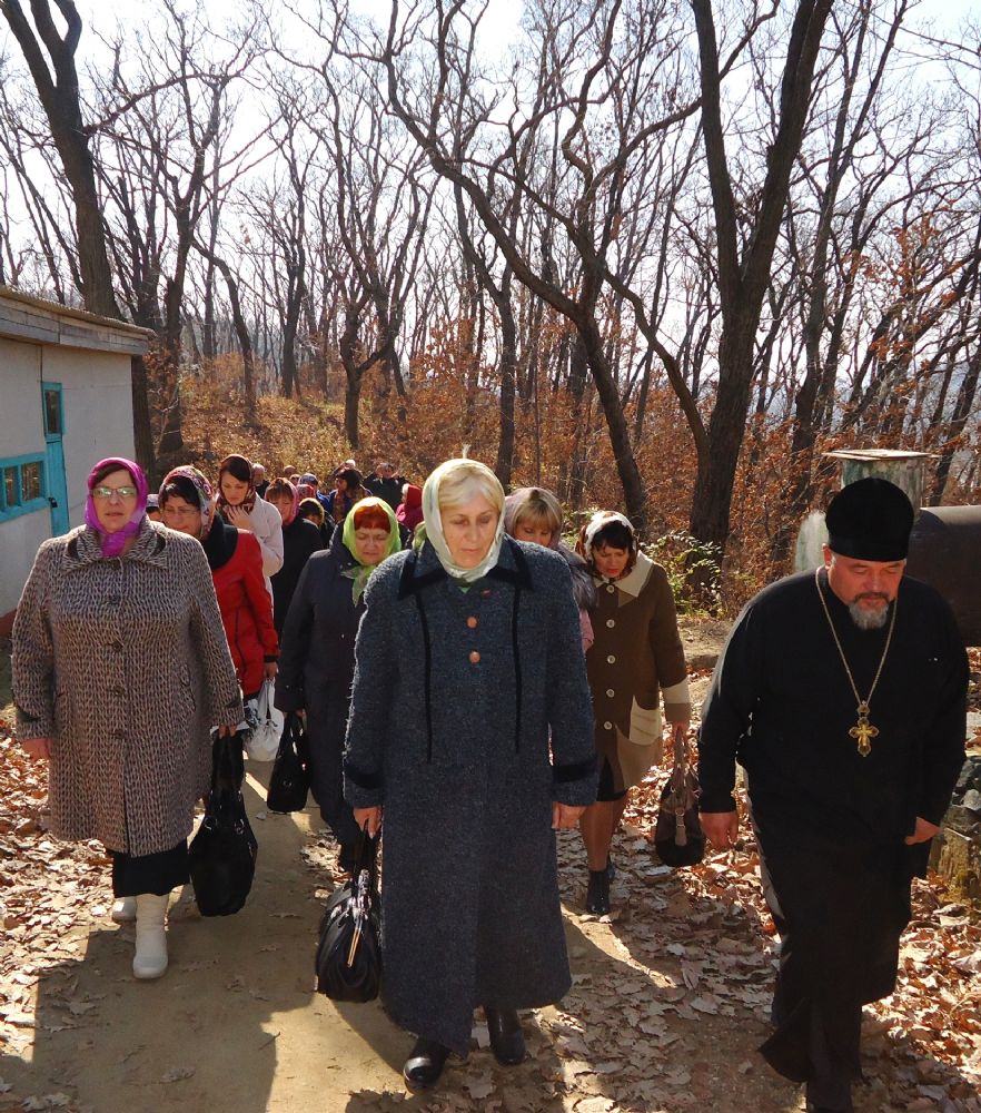 Затем гости поднялись на Преображенскую сопку, где величественно возвышается ныне одноимённая церковь; совсем недавно она была воссоздана в своем историческом виде. Здесь в духовную беседу с паломниками и вступили протоиерей Владимир Капитанюк и еще один батюшка - иерей Александр Спрыгин, настоятель храма Успения Божией Матери посёлка Кировский. Потом побывали паломники у могилки духовника старца Варнавы (Губорькова); кто-то помнил его ещё при жизни. Сфотографировались у Поклонного Креста, где когда-то стоял большой храм в честь св. Иннокентия Иркутского. Покидая обитель, гости, по благословению ее наместника игумена Василия (Кулакова), получили подарки: Новый Завет, церковную литературу, иконочки Божией Матери «Объятие Отче».
