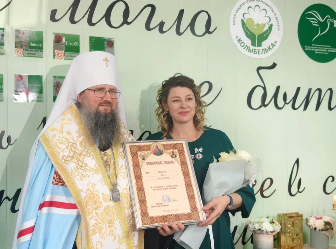 Во время торжественной церемонии Яна Цуркан, директор «Колыбельки», а также меценаты, поддерживающие социально ориентированные некоммерческие организации края, были награждены архиерейскими грамотами и благодарностями.