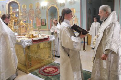 Его Преосвященству сослужили иерей Андрей Калнин и иерей Андрей Попов.