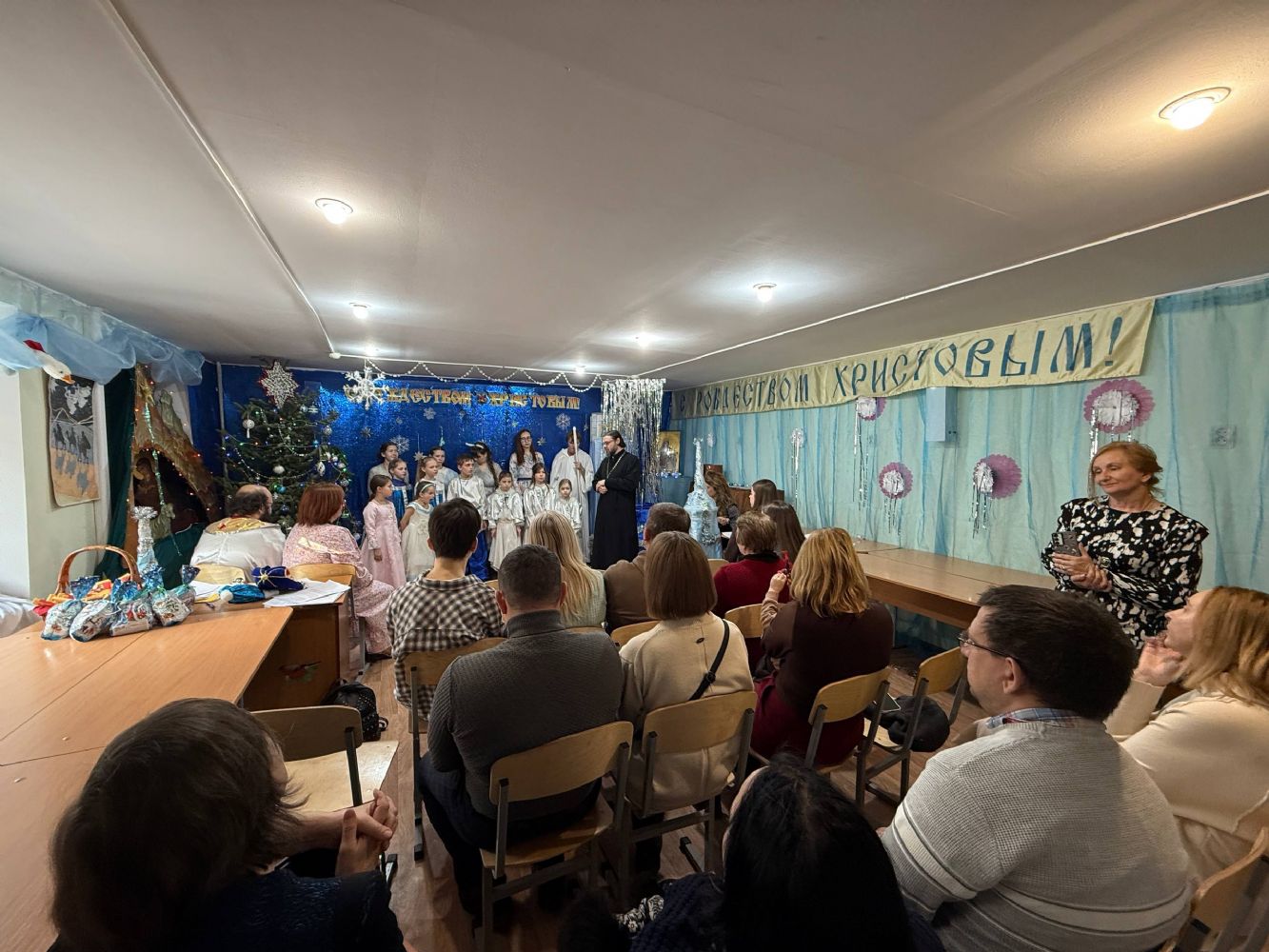 По окончании представления духовник школы протоиерей Даниил Нефедьев обратился к собравшимся с пастырским словом. Батюшка поблагодарил детей и педагогов за интересный духовно-нравственный спектакль и отметил, что с помощью таких праздничных постановок учащиеся лучше запоминают важные события Священной библейской истории. Отец Даниил также обратил внимание на важность духовно-нравственного воспитания детей. Затем все ребята получили сладкие подарки и мягкие игрушки от священнослужителя.