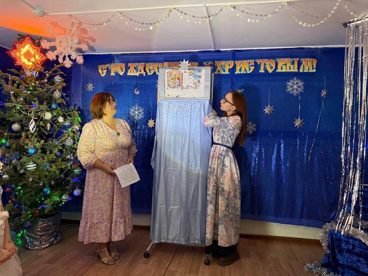 В завершающей части представления участников мероприятия ожидал сюрприз, который подготовили педагоги школы при содействии родителей. Был создан декоративный телевизор, по которому двигались картинки. Изображение комментировала учитель, повествуя о событиях праздника Рождества Христова. Все присутствующие с интересом наблюдали за происходящим на экране и внимательно слушали рассказ.