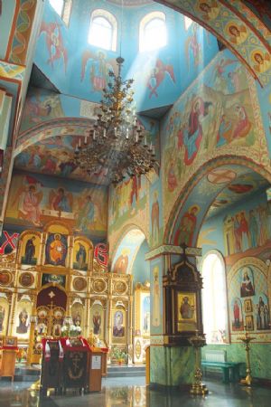 Внутри храм расписан по общей классической схеме – фресок, орнаментации и акцентированию византийского и древнерусского иконописания и зодчества.