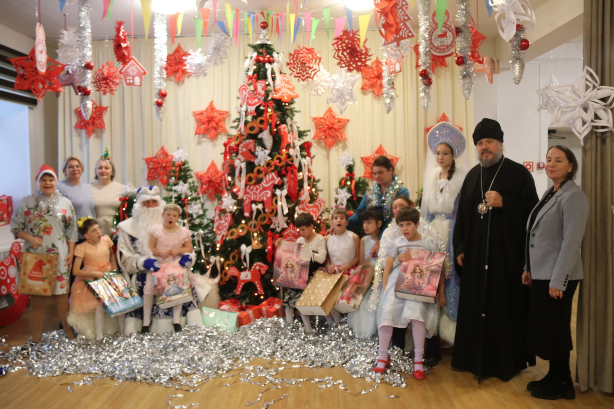 23 декабря 2025 года епископ Находкинский и Преображенский Николай посетил Екатериновскийдетский дом-интернат для инвалидов «Солнышко». Владыка побывал на новогоднем утреннике, который подготовили воспитатели с детьми, передал рождественские гостинцы и наборы для творчества.