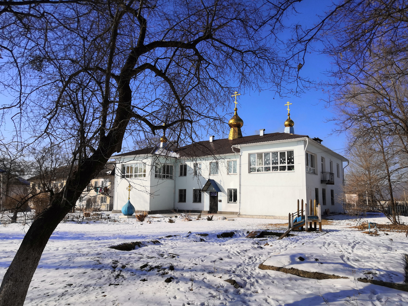 Это двухэтажное строение общей площадью 680 кв.метров на территории ранее принадлежавшей детскому саду площадью чуть меньше 0,5 гектара. В 2012 году была совершена реконструкция здания: ветхая шиферная крыша заменена на железную черепицу, заведены железные каркасы для основания купольной конструкции и установлены купола. Был отремонтирован фасад здания, проведена новая система канализации, сменена отмостка и реконструирован дымоход для печной системы отопления, очищена система вентиляции, оборудован подвал с выходом воронкообразной ниши для загрузки с улицы дров и угля, окультурена окружающая территория, закуплены иконы в алтарь, произведен внутренний ремонт всех помещений, оборудована библиотека и воскресная школа.