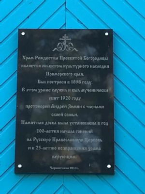 Свою роль в перемене места церковного служения о. Андреем Зиминым сыграло образование в 1899 г. Владивостокской епархии, где широко развернулось храмовое строительство и открытие новых приходов. Отец Андрей согласился в 1900 г. на переезд в Южно-Уссурийский край настоятелем храма Рождества Пресвятой Богородицы с. Черниговка – одного из самых больших селений в крае, расположенного в местности, отличающейся теплым климатом и плодородием[5].