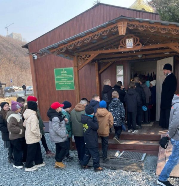 24 марта ученики начальных классов МБОУ СОШ № 83 г. Владивостока посетили с экскурсией храм в честь святых благоверных князей Бориса и Глеба. У храма детей встретил настоятель, иерей Алексий Синенко.