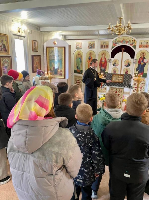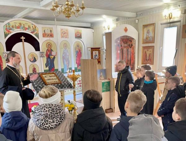 Из рассказа священнослужителя дети узнали об особенностях устройства православного храма, предметах храмового убранства и иконах. Отец Алексий в доступной форме поведал историю первых русских святых — князей Бориса и Глеба, в честь которых освящён храм. Также школьников заинтересовали богослужебные книги.