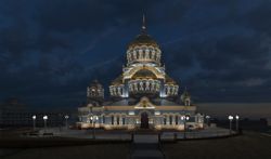 Здание будущего храма будет располагаться на мысе Чуркин, рядом с театром оперы и балета, между ул. Фастовская, 14 - Очаковская, 5. Высота храма – более 40 метров, а в основании соотношение сторон будет 40 на 26 метров.