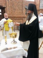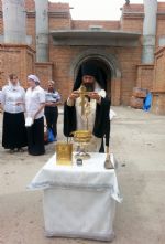 После водоосвящения владыка Иннокентий совершил окропление святой водой строительной площадки собора и вознес молитву о даровании сугубой помощи Божией в деле благополучного завершения строительства Преображенского кафедрального собора.