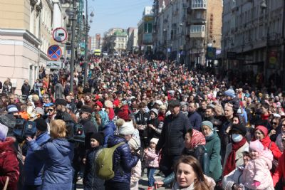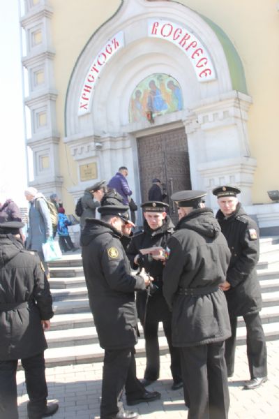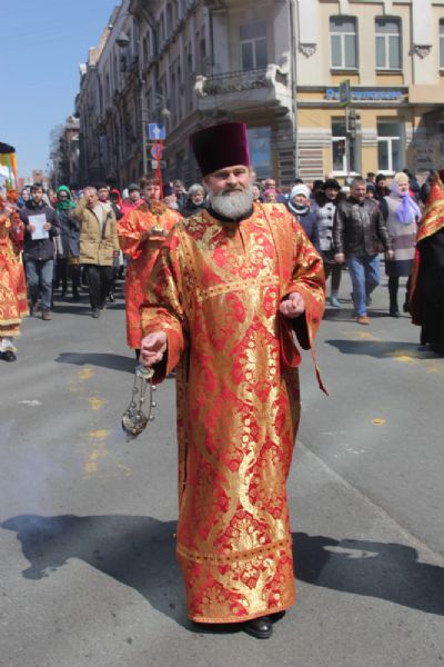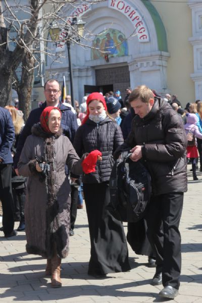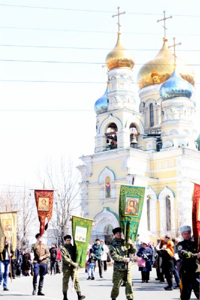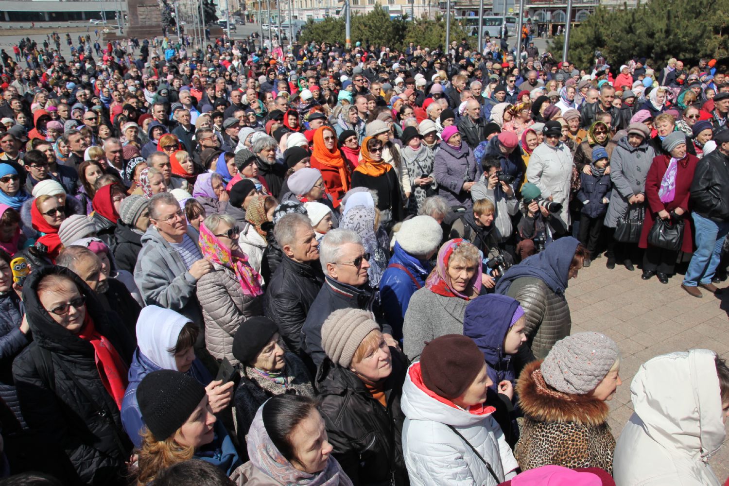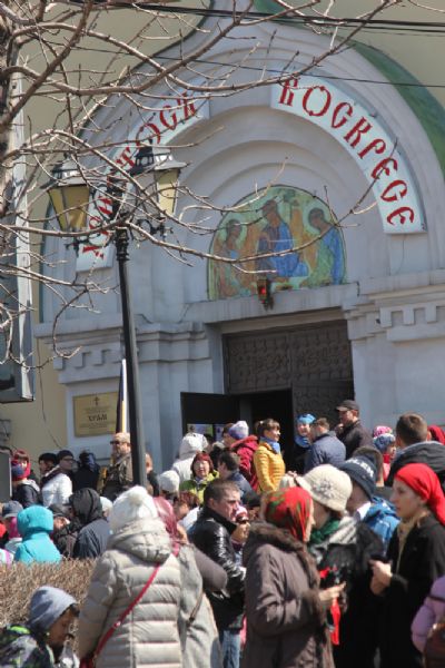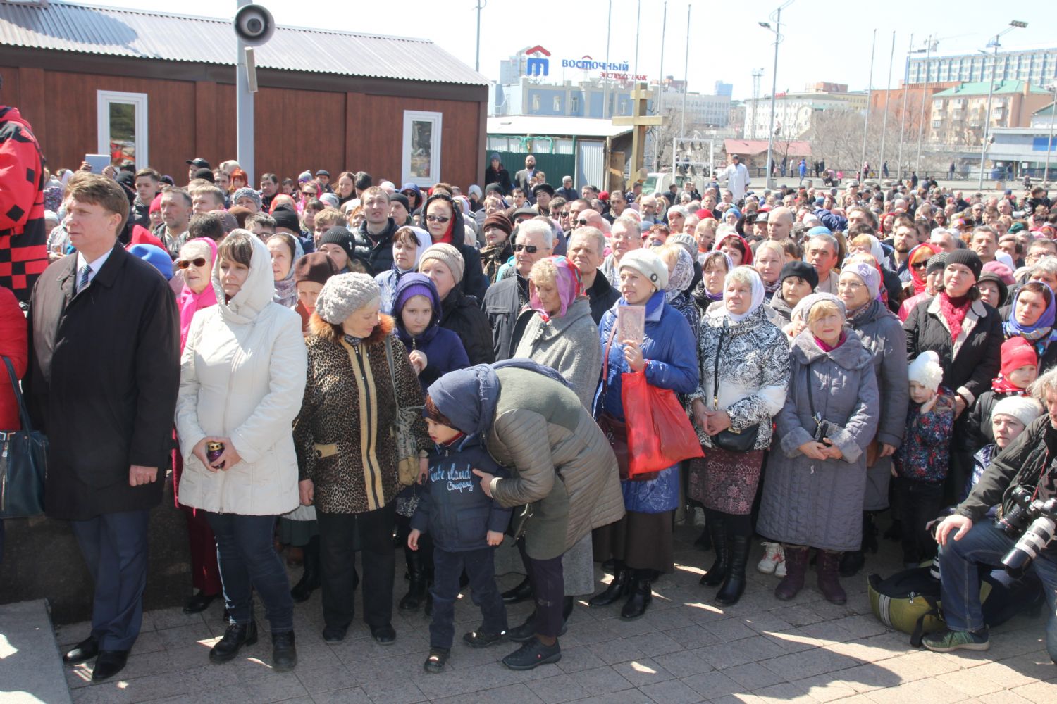 В городскую праздничную колонну вошли руководители епархиальных отделов, настоятели и клир храмов и монастырей, представители приходов, общественных организаций, казачества и учебных заведений — Духовного центра, православной гимназии. Сбор колонны начинался в Покровском кафедральном соборе, где после пасхальных богослужений прошло также освящение куличей — за православной традицией с интересом наблюдали гости Владивостока, туристы из стран АТР.