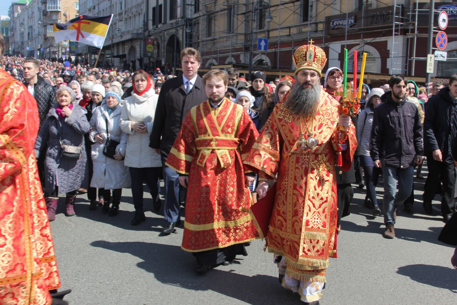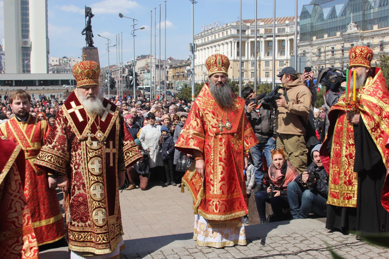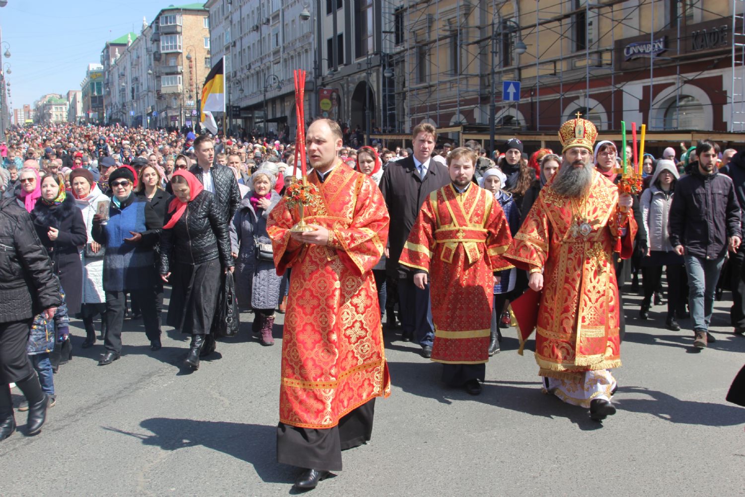Владивосток. В праздник Светлого Христова Воскресения, 8 апреля 2018 года, по центральной магистрали приморской столицы — Океанскому проспекту — прошел Пасхальный Крестный ход. В праздничном шествии, которое возглавил викарий Владивостокской епархии епископ Уссурийский Иннокентий, приняли участие порядка тысячи приморцев. Сопровождалось шествие колокольным перезвоном передвижной звонницы.