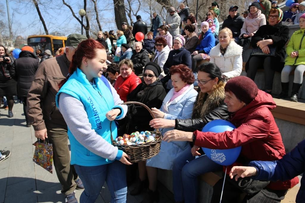 Продолжилось празднование на площадке амфитеатра набережной Спортивной Гавани — со Светлым Христовым Воскресением жителей и гостей города поздравил глава Владивостока Виталий Веркеенко: «От всего сердца поздравляю всех жителей и гостей нашего города со светлым праздником Пасхи. Христово Воскресение имеет давние традиции и корни. Пасха является для нас праздником обновления, весны, добра, праздником любви, надежды и веры...» Праздничное настроение горожанам подарило выступление лучших творческих коллективов.