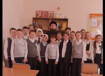 В декабре 2025 года иеродиакон Филарет (Каширский) провел занятие в школе №19 «Выбор» мкр. Врангель.