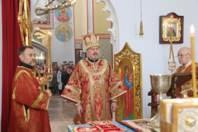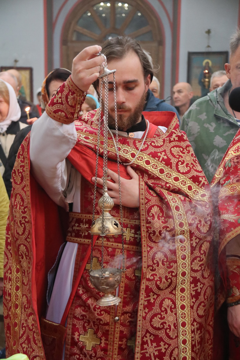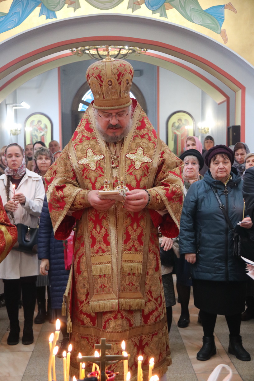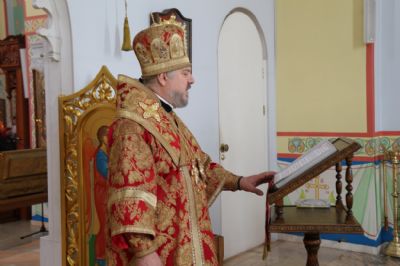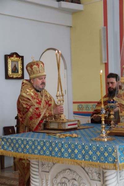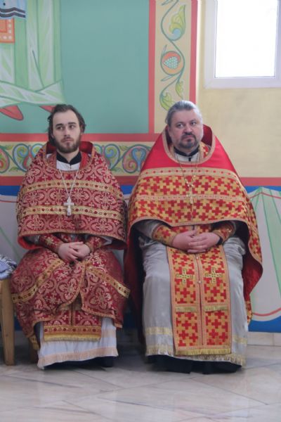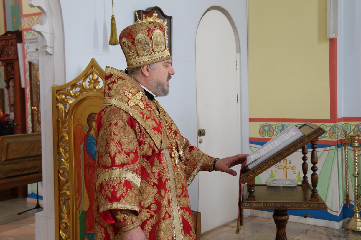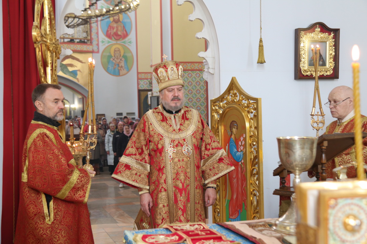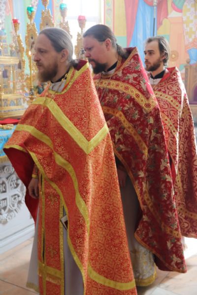 Его Преосвященству сослужили: иерей Андрей Калнин; иерей Виталий Шаркеев; иерей Андрей Попов; иеромонах Ермоген (Крещенко); иерей Илия Гречишников.
