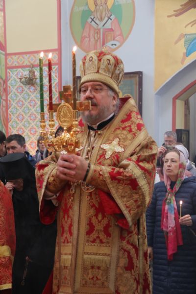 По заамвонной молитве епископ Николай возглавил зупокойную панихиду пасхальным чином по всем преждепочившим от века православным христианам и обратился ко всем присутствующим со словами проповеди.