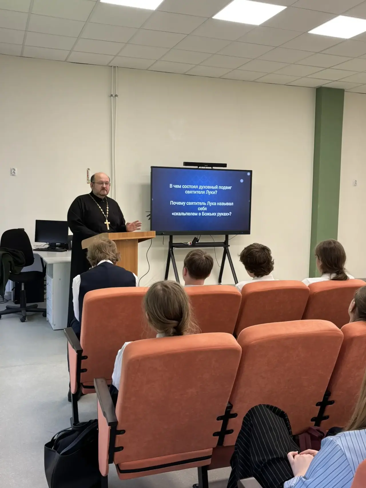 Иерей Роман Капитанюк провел встречи со старшеклассниками г. Большой Камень о святом враче Луке Войно-Ясенецком в рамках проекта «Помним историю, сохраняем традиции».