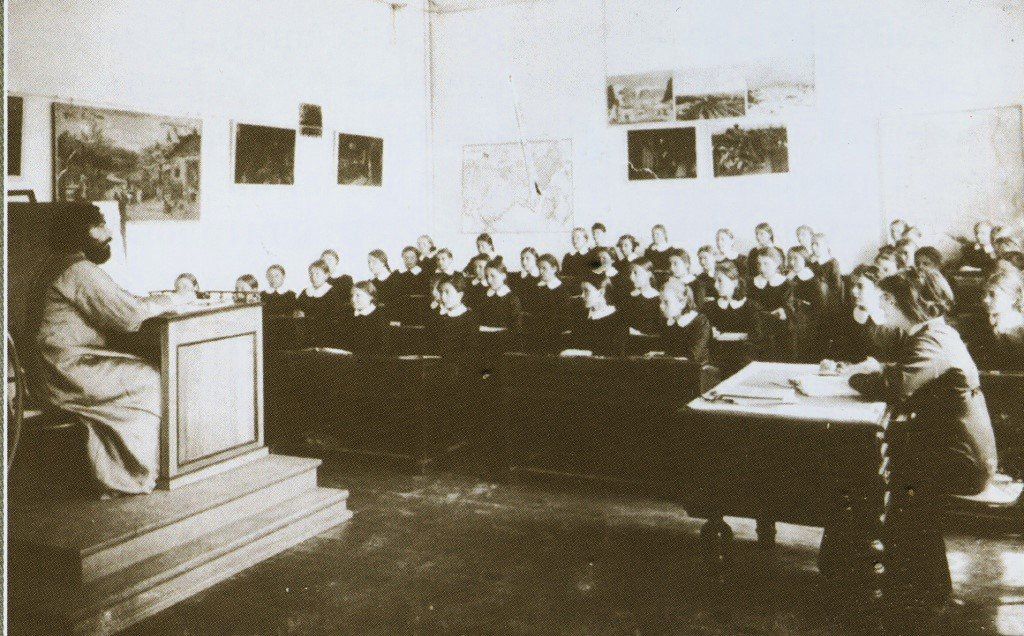 Фото: Благовещенское епархиальное училище Ученицы Благовещенского епархиального училища на уроке Закона Божия Источник: amurarhiv.ru