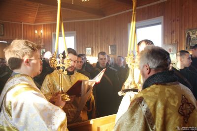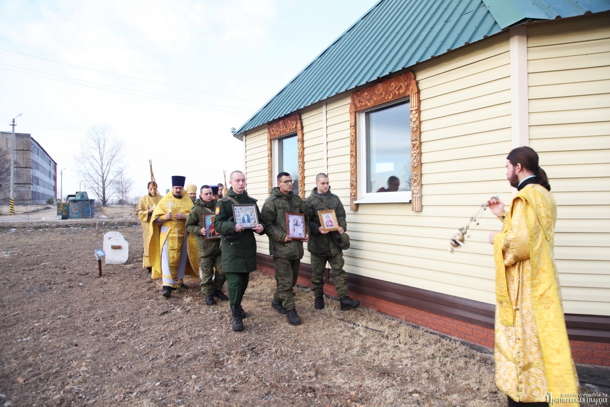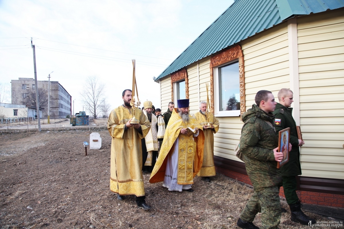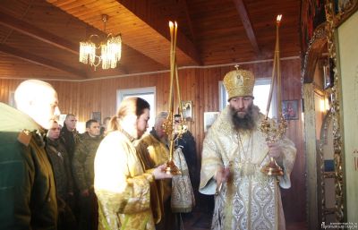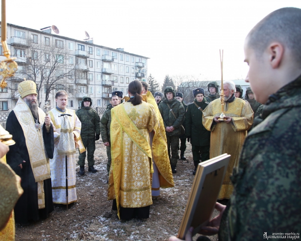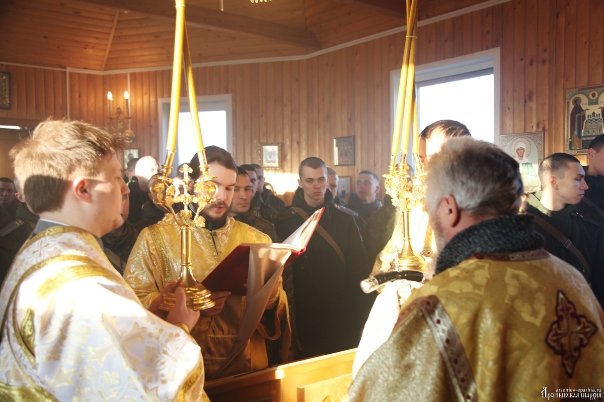 На следующий день Владыка Гурий возглавил богослужение в воинской части №64845 села Старосысоевка в сослужении секретаря Арсеньевской епархии протоиерея Александра Сулема и настоятеля храма, полкового священника иерея Михаила Котенко, диакона Кирилла Зиновьева и диакона Николая Колесникова. За богослужением молились представители руководства части и около 50 военнослужащих.