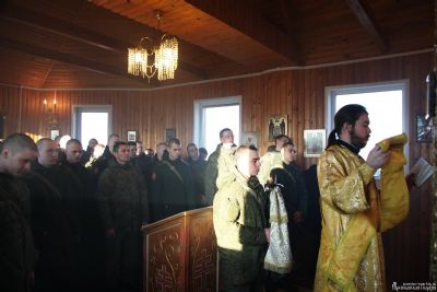 В конце богослужения состоялся Крестный ход вокруг храма. В проповеди по окончании Литургии архипастырь затронул множество важных ныне тем: рассказал о вере, о спасении, о страшном суде, о нравственной и духовной жизни, о влиянии средств массовой информации на сознание молодого поколения, о том, что надо верно служить Родине, отечеству, укреплять семью и нравственную жизнь. «Слово «религия» переводится «связывать». А вы как раз по специальности связисты. Нужно налаживать связь внутри армии, связь друг с другом, а главное – связь с Богом», — подчеркнул архиерей.