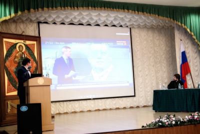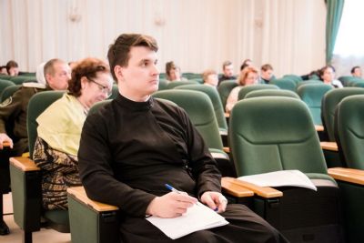 С приветственным словом к участникам обратился проректор по науке и инновациям Хабаровской духовной семинарии иерей Максим Суворов.