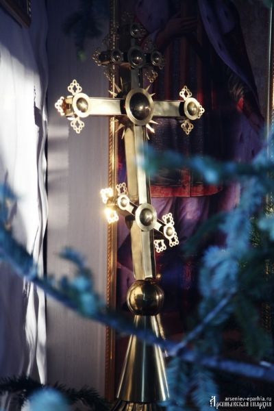 За праздничной службой молилось множество верующих. По запричастном стихе были оглашены Рождественские послания Святейшего Патриарха Московского и всея Руси Кирилла и епископа Арсеньевского и Дальнегорского Гурия.