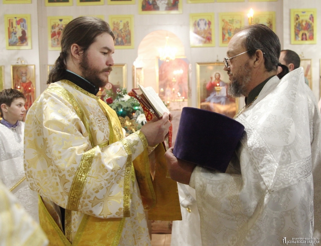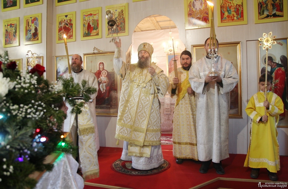 Праздничные богослужения были совершены во всех храмах епархии. В ночь с 6 на 7 января первую рождественскую службу возглавил епископ Арсеньевский и Дальнегорский Гурий в храме Рождества Христова г.Арсеньева. Правящему архиерею сослужили протоиерей Николай Хоменко, иерей Александр Ступа, иерей Николай Колесников, дьякон Кирилл Зиновьев.