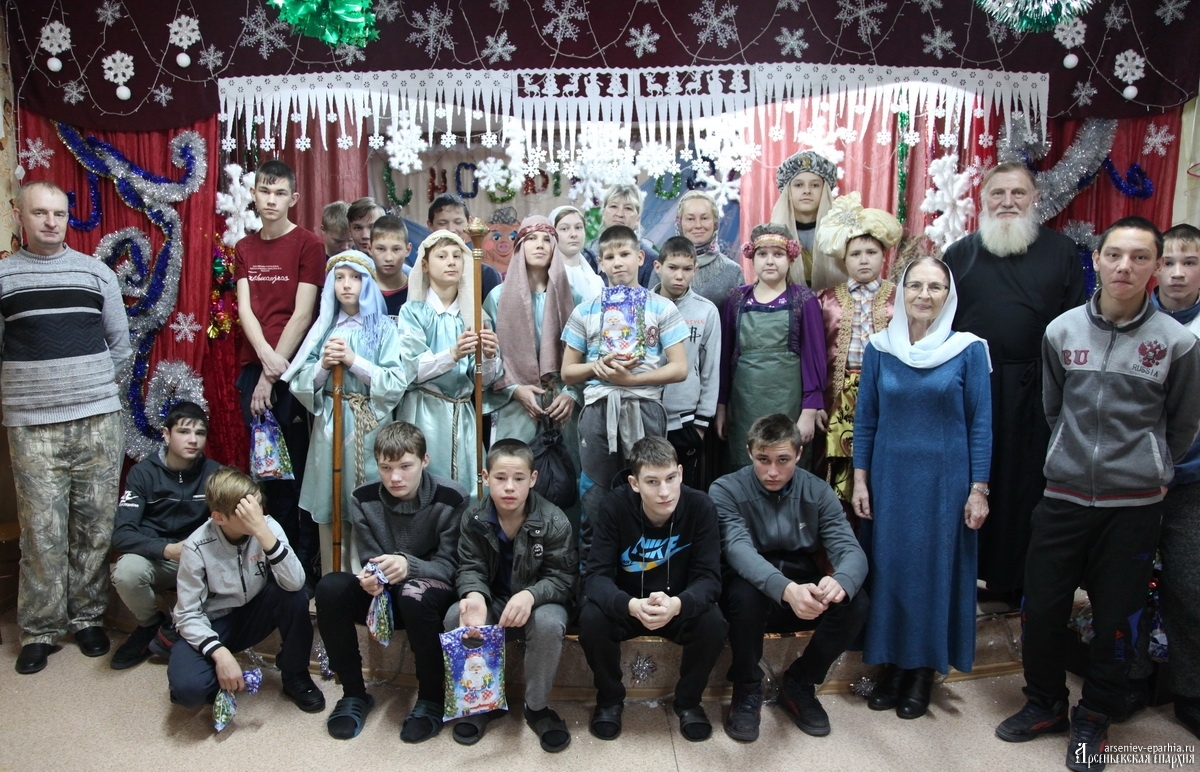 Однако на этом рождественские мероприятия не закончились. Традиционно, помимо концерта в Кафедральном Благовещенском соборе, ученики воскресной школы с преподавателями и художественными руководителями ездят по социальным и образовательным учреждениям города Арсеньева и близлежащих поселений. И в этом году, 8 и 13 января учащиеся воскресной школы с руководителями посетили детские дома города Арсеньева, села Гражданка (КГОБУ Гражданская ДШИ), а также Арсеньевский СРЦН Ласточка, где показали воспитанникам этих учреждений сценку о Рождестве. Ребята внимательно и заинтересованно посмотрели все представление, а потом вместе со всеми остальными детьми получили сладкие подарки.
